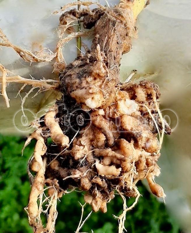 L’Ernia delle crucifere (o ernia del cavolo) è un fungo molto pericoloso per tutte le piante della famiglia delle brassiche. È diffuso nei terreni con pH compresi tra 6 e 7. É una problematica molto insidiosa negli orti dove è più difficile la rotazione con specie di altre famiglie. Questo patogeno aggredisce le radici delle piante, con la formazione di ingrossamenti (ernie) (figura 1 - figura 2 - figura 3 - figura 4), che impediscono la normale funzionalità di assorbimento idrico e assimilazione degli elementi nutritivi. Le piante colpite da Ernia hanno uno sviluppo e produzione limitata, tendendo ad appassire nelle ore più calde del giorno.