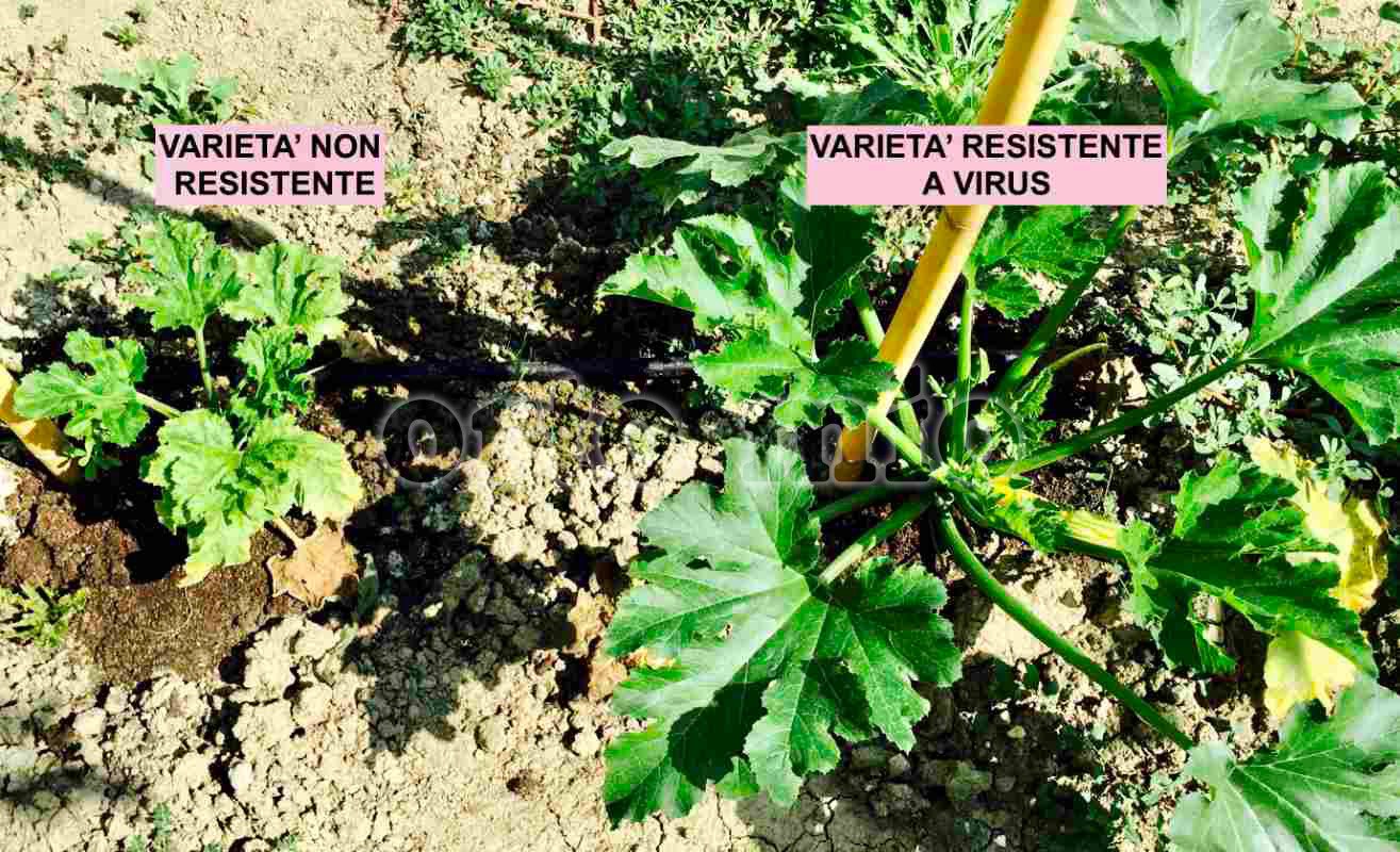 - La strategia più efficace per prevenire i danni dei virus delle cucurbitacee in zucchini e cetrioli è di acquistare le varietà resistenti (controllare le indicazioni sul sito nelle caratteristiche delle singole varietà). Queste varietà offrono una protezione molto più affidabile, rispetto alle comuni zucchine da “semina diretta” e spesso riescono a produrre fino all’autunno. In condizioni di pressione virale particolarmente elevata, anche alcune piante delle varietà resistenti potrebbero venire infettate dai virus. Tra le varietà resistenti, alcune dimostrano una tolleranza superiore alle altre rispetto alle diverse varianti dei virus.