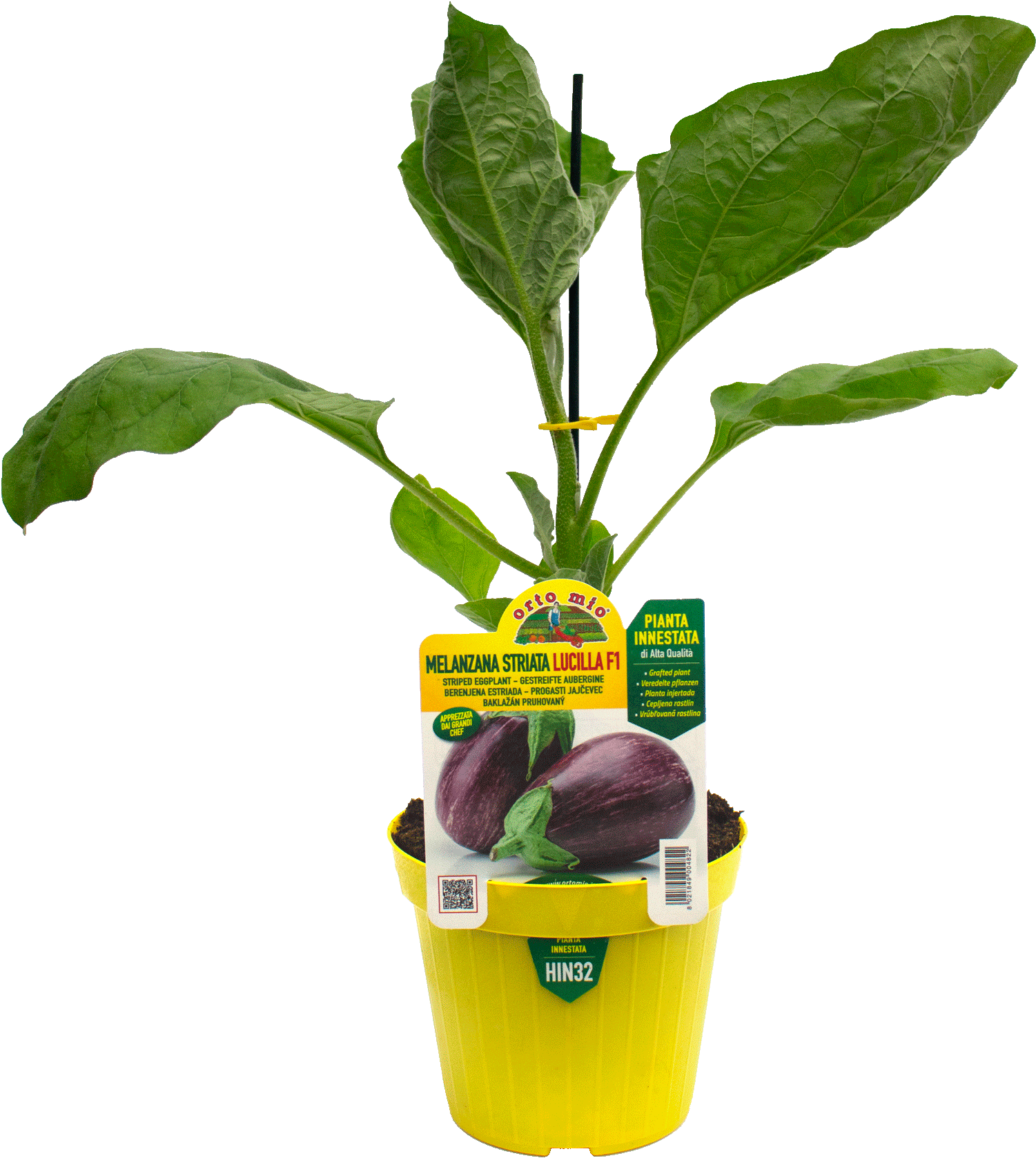 Nuova melanzana dalle qualità organolettiche eccellenti. Ha pianta forte e produttiva, con frutti privi di spine di circa 500 gr dal sapore molto apprezzato. Eliminare eventuali ricacci che si potrebbero originare dal portinnesto, alla base del fusto (i ricacci del portinnesto si riconoscono perché spuntano dal terreno alla base della pianta e la forma delle foglie è differente rispetto alle altre della pianta). Per una ridotta formazione di semi, raccogliere le bacche quando la colorazione è ancora brillante, prima che diventino opache.