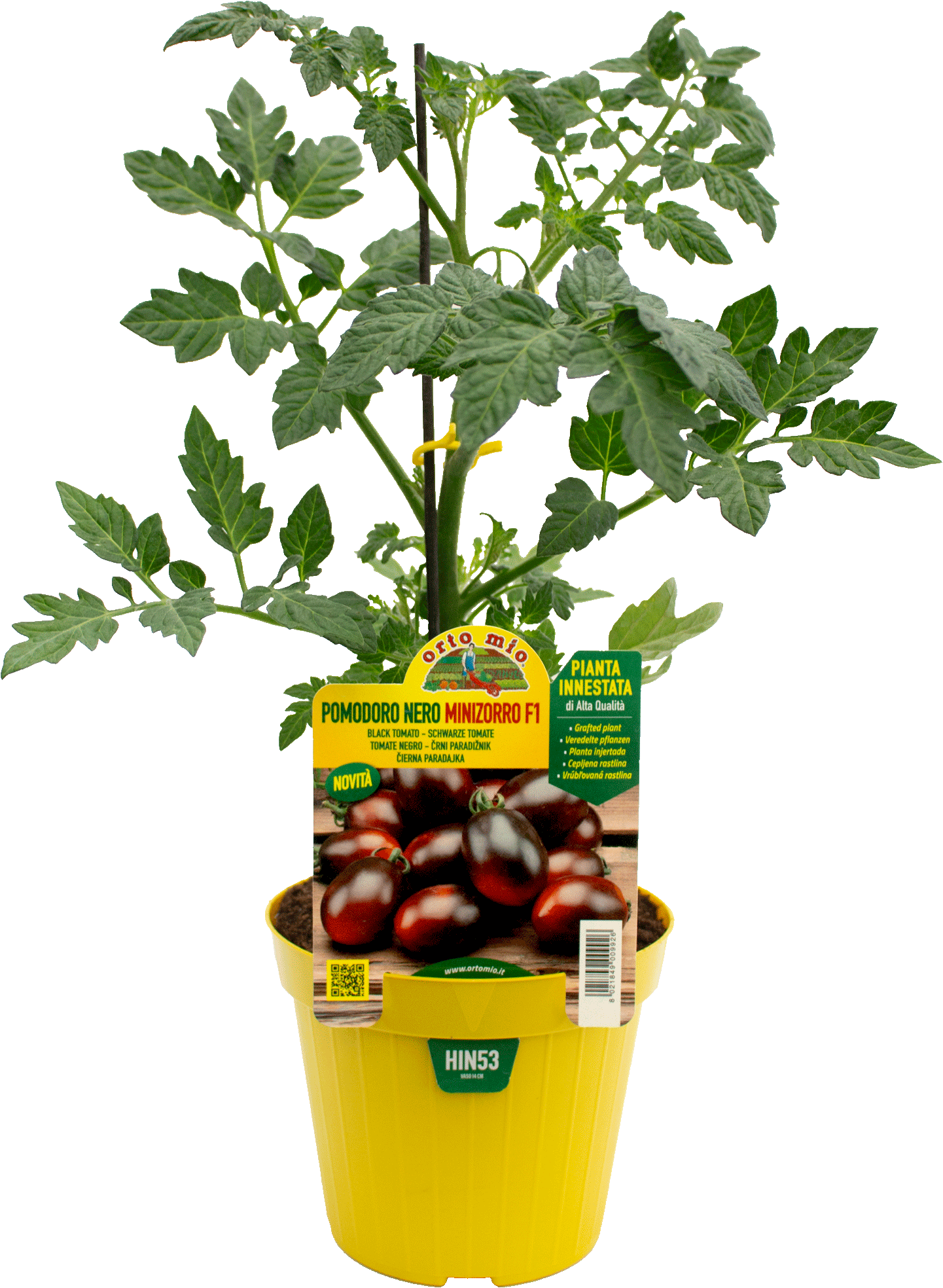Minizorro è il primo pomodorino nero gustoso e produttivo! Il sapore è unico per l'equilbrio tra dolcezza e aroma fruttato, con note umami. Ha bacche tondo-ovali di 20-25 grammi, dalla polpa croccante, di color rosso carico. Davvero stupefacente l'effetto cromatico e gustativo di Minizorro quando è inserito nei mix di pomodorini in insalata. Minizorro è naturalmente resistente alle principali patologie radicali e a Cladosporiosi. Varietà esclusiva di Orto Mio.