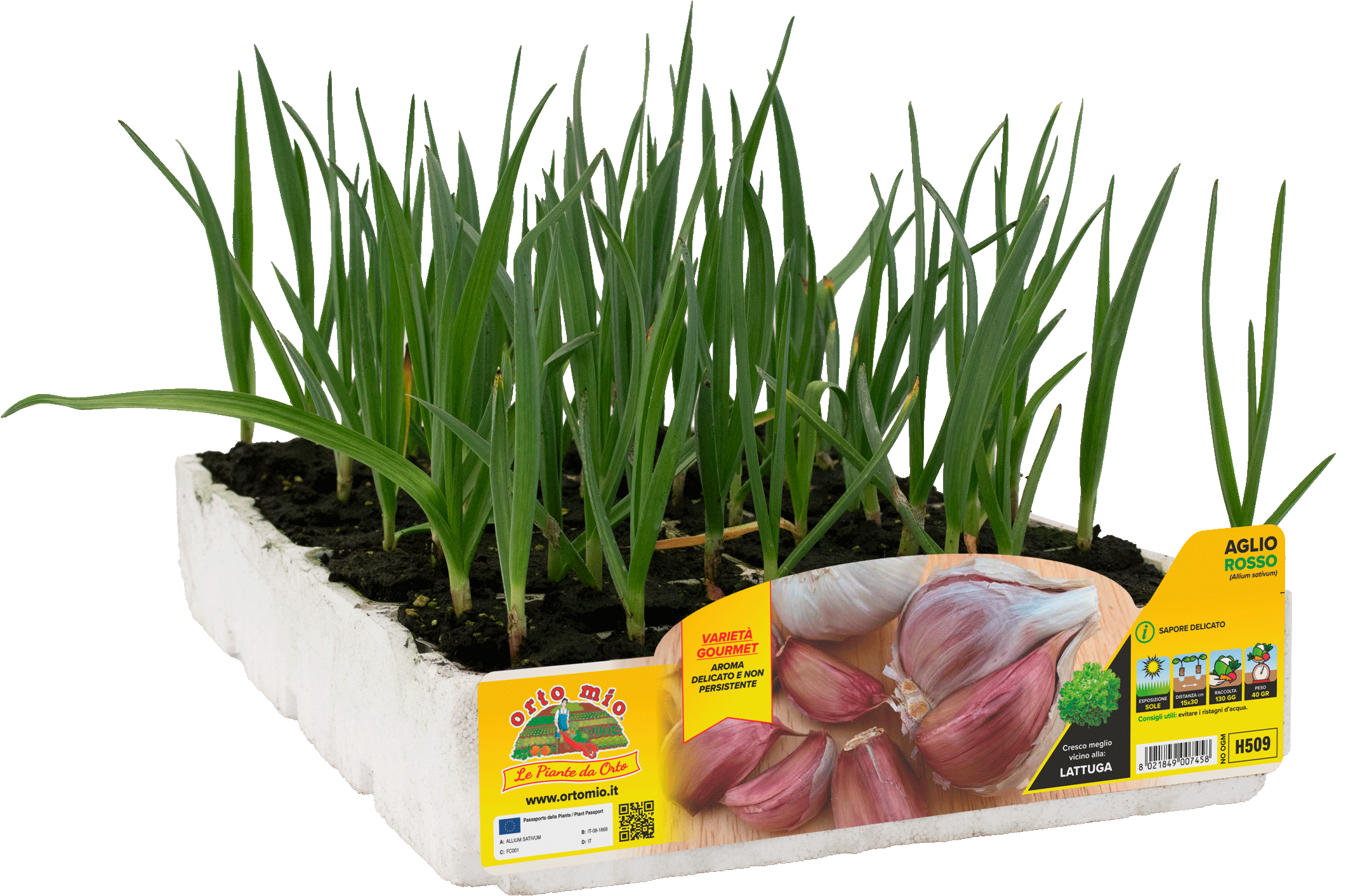 Il sapore: nella gamma Orto Mio ci sono le varietà classiche (Allium sativum), dal sapore più e meno intenso: dal gusto marcato del bianco Garcua, al meno forte Gardos (tipo rosso di Sulmona), e anche il delicato Aglione (Allium ampeloprasum).