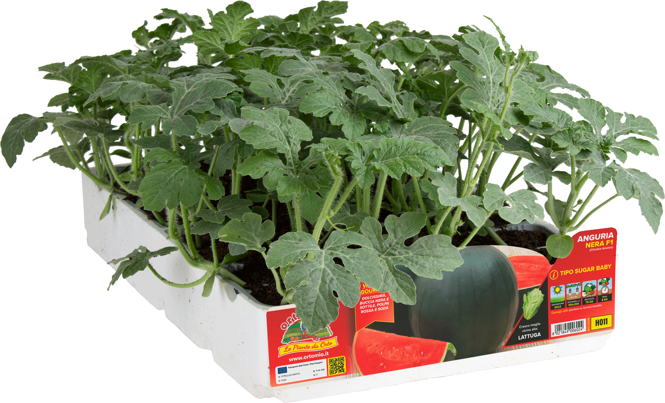 Red Star, nella tipologia "Sugar Baby", con pianta vigorosa, forte e produttiva. Ottima la qualità della polpa, sempre dolce. Frutti tondeggianti, con buccia molto scura, tolleranti alle spaccature. Ciclo medio precoce, matura a 70-80 giorni dal trapianto. Il momento ideale per la raccolta si evidenzia confrontando i primi frutti prodotti dalla pianta, rispetto agli altri: il colore della buccia delle angurie mature diventa più opaco, mentre il peduncolo si restringe, perdendo gran parte del pelo e la buccia a contatto con il suolo assume colore giallo. Varietà resistente a fusariosi (Fon 0,1).