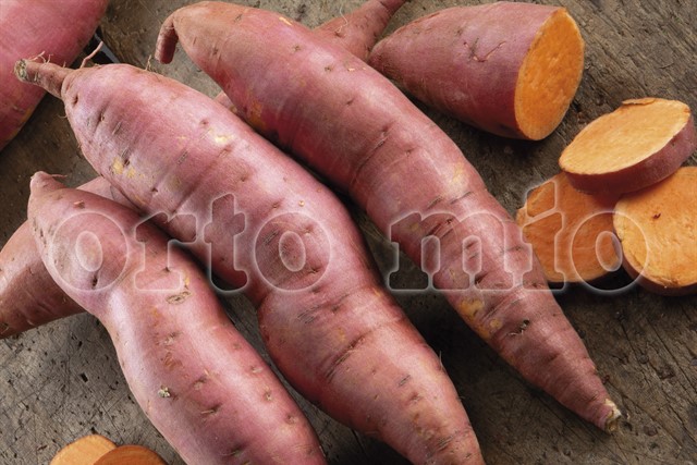 La batata (Ipomoea batatas), detta anche “patata dolce” o “patata americana”, appartiene alla famiglia delle Convolvulacee ed è considerata nella top 5 degli alimenti più salutari! È una preziosa risorsa in cucina, essendo in grado di sostituire le patate classiche praticamente in tutti gli utilizzi, ma con proprietà nutrizionali decisamente più salutari. Il tubero può essere utilizzato bollito, cotto al forno, fritto e anche trasformato in creme e per i dolci. Anche le foglie giovani e i germogli si possono utilizzare nelle insalate miste, in zuppe, frullati e torte salate. Si trapianta in piena primavera perché gradisce temperature sopra i 20°.