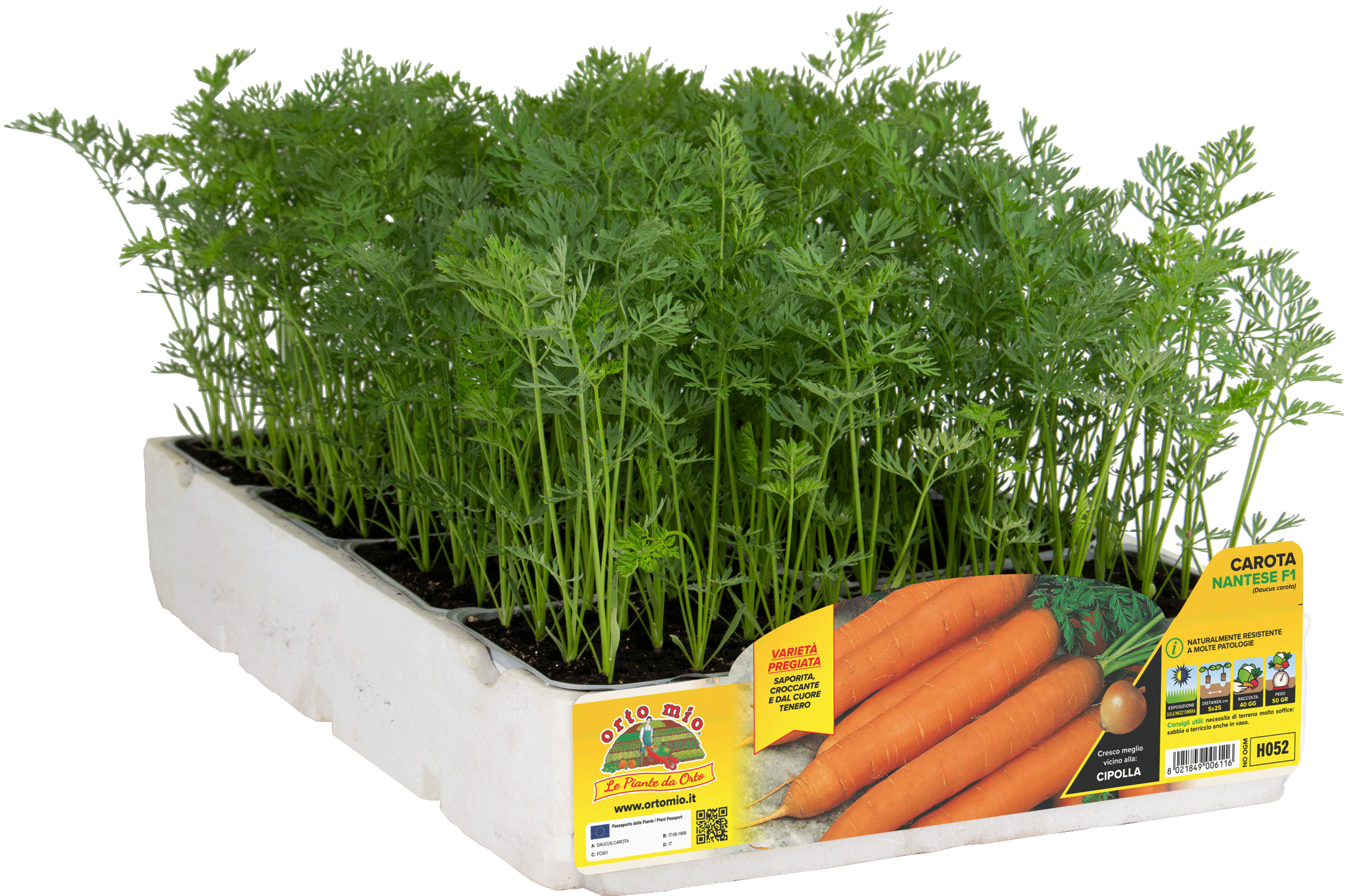 Nuova carota dal sapore dolce, ricca in beta carotene. Ha una grande gamma di resistenze alle comuni patologie fogliari e radicali della carota. Trapiantare in terreno soffice e ben drenato, lavorato fino a 30 cm di profondità. Evitare i ristagni idrici.