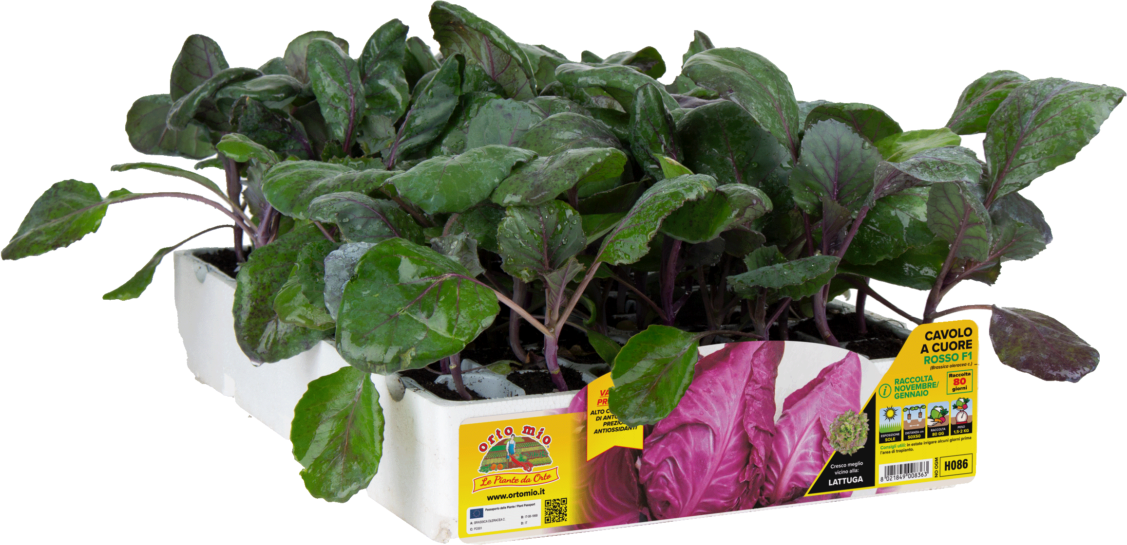 Nuova varietà di cappuccio rosso molto elegante, di color viola, per il contenuto di antociani, antiossidanti preziosi per la salute. Tenero e croccante, colora molto gradevolmente le insalate miste. Ha una buona tolleranza alle spaccature che gli conferisce una miglior tenuta di campo rispetto ai cappucci a cuore verdi. Si raccoglie a 70-90 giorni dal trapianto e può superare i 2 kg di peso. Ha pianta di facile coltivazione, molto sana, di medio vigore.