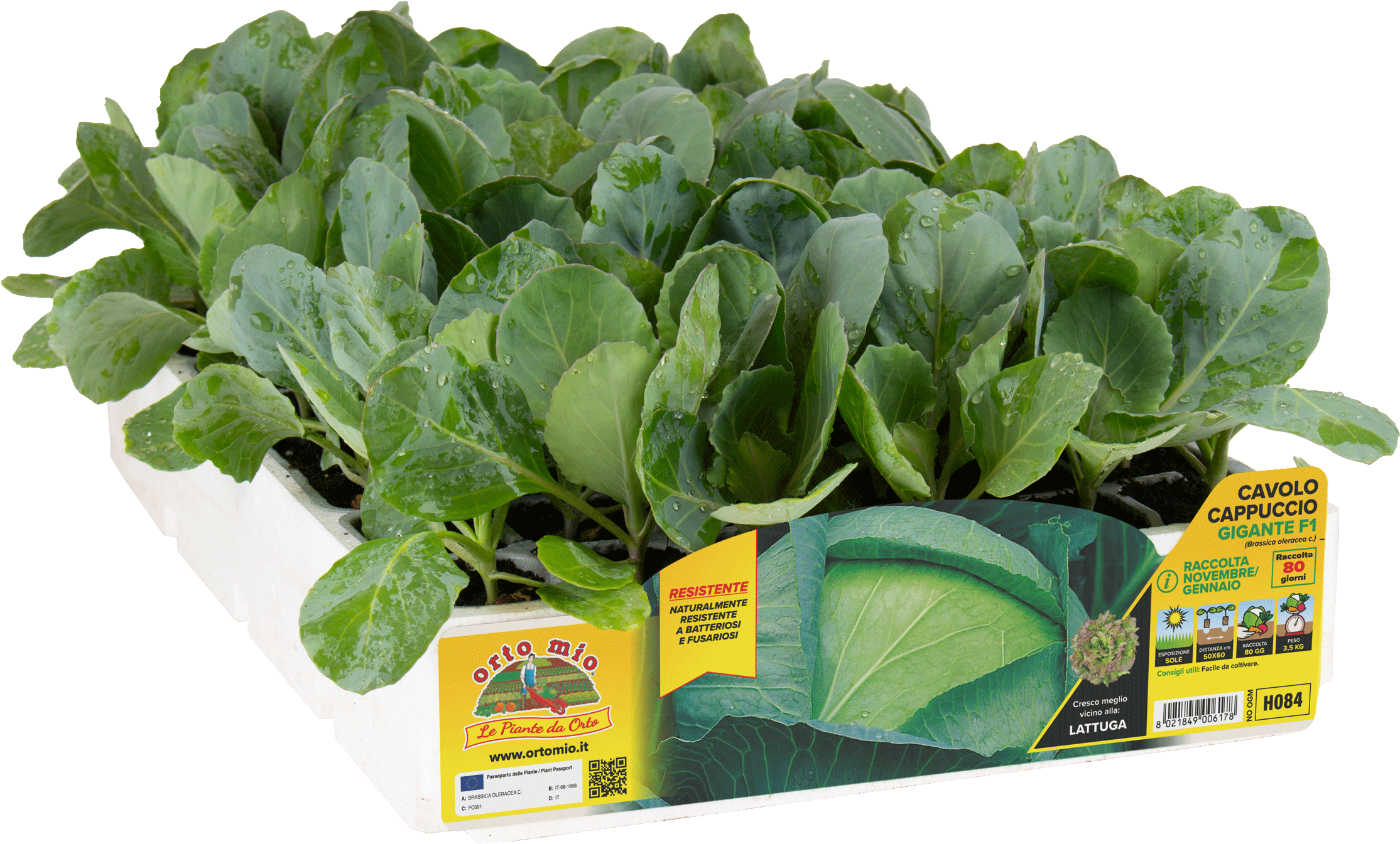 Moderno cavolo cappuccio di grandi dimensioni e facile coltivazione. La pianta è molto vigorosa e matura in circa 85 giorni. La testa rotonda può superare i 3,5 kg di peso e ha ottima resistenza alle spaccature. Con sesti larghi (50x50 cm) e concimazioni generose raggiunge le pezzature più imponenti, anche oltre 5 kg. Adatto anche ai terreni con scarsa rotazione, è tra le varietà più sane, grazie alla resistenza a fusariosi e batteriosi. Il sapore è molto apprezzato, più intenso rispetto a Betti e Cilema ma non eccessivamente marcato.