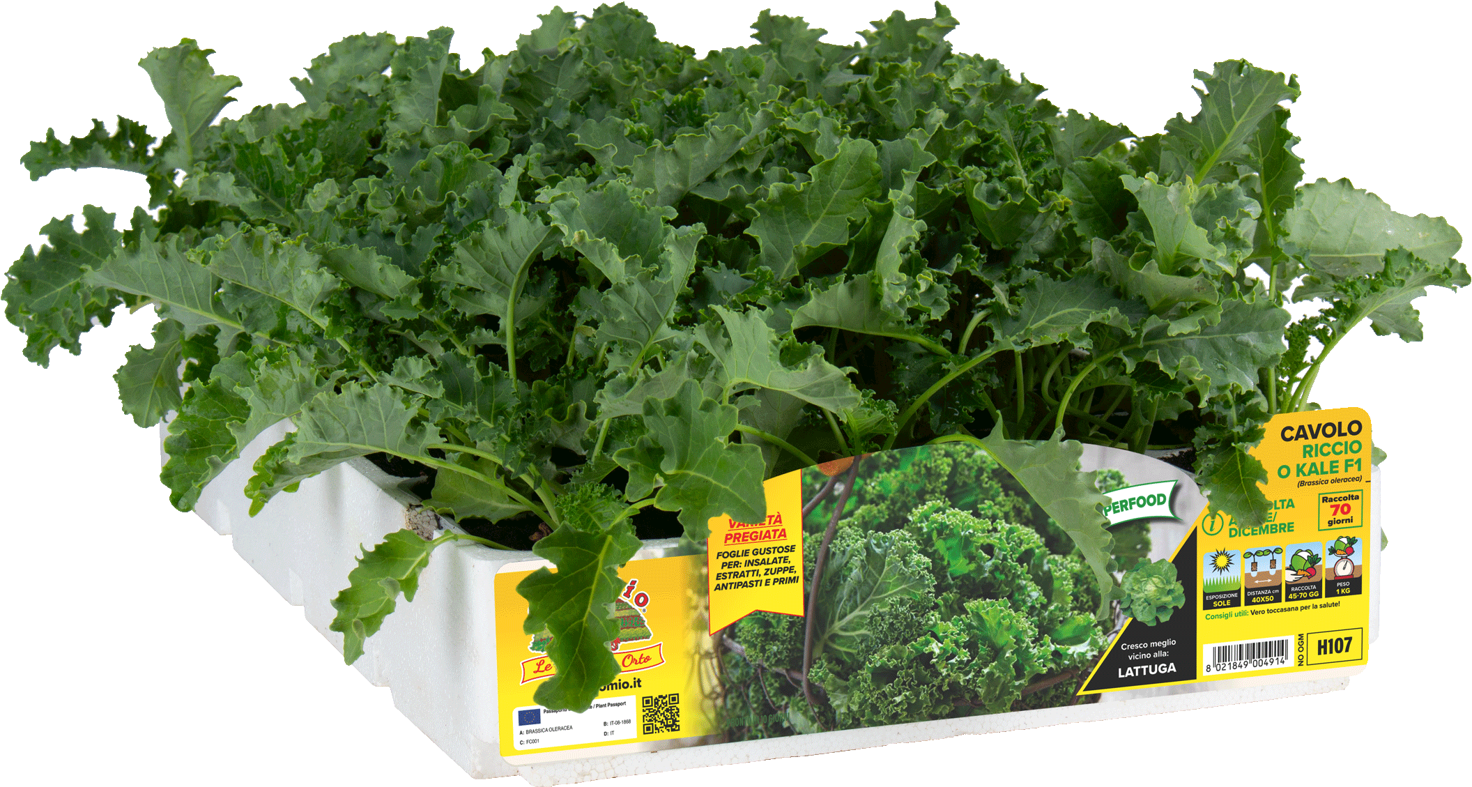 Il Kale o cavolo riccio è tra gli ortaggi più salutari in assoluto, considerato da molti quasi un “elisir di lunga vita”. Karillo è l’innovativo Kale, dal sapore dolce e con steli molto teneri e commestibili. Ottimo per insalate, estratti, zuppe, antipasti, primi piatti e anche per un pesto originale. Si trapianta da marzo a settembre ed è pronto dopo 50-70 giorni. La raccolta si può effettuare tagliando gradualmente le foglie esterne, oppure cimando la testa, lasciando 4-5 foglie basali, per stimolare l'emissione di teneri ricacci.