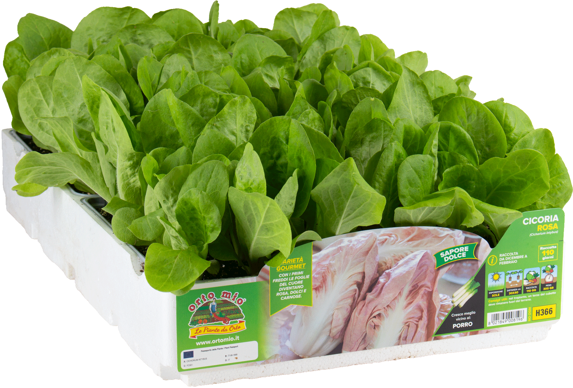 Cicoria di recente costituzione. Ha pianta vigorosa, semi-aperta, che vira di colore dal verde chiaro al crema, fino al rosa ai primi freddi. Sapore sorprendente! Foglie tenere e dolci, dalla prelibata costa carnosa. Raggiunge i 350 gr di peso. Varietà tardiva, con raccolta dal mese di dicembre, a circa 100-120 giorni dal trapianto. Tollerante al freddo. La "Rosa" è eccellente in insalata dopo le prime gelate. Le foglie esterne sono ottime per sformati, torte salate e saltate in padella.