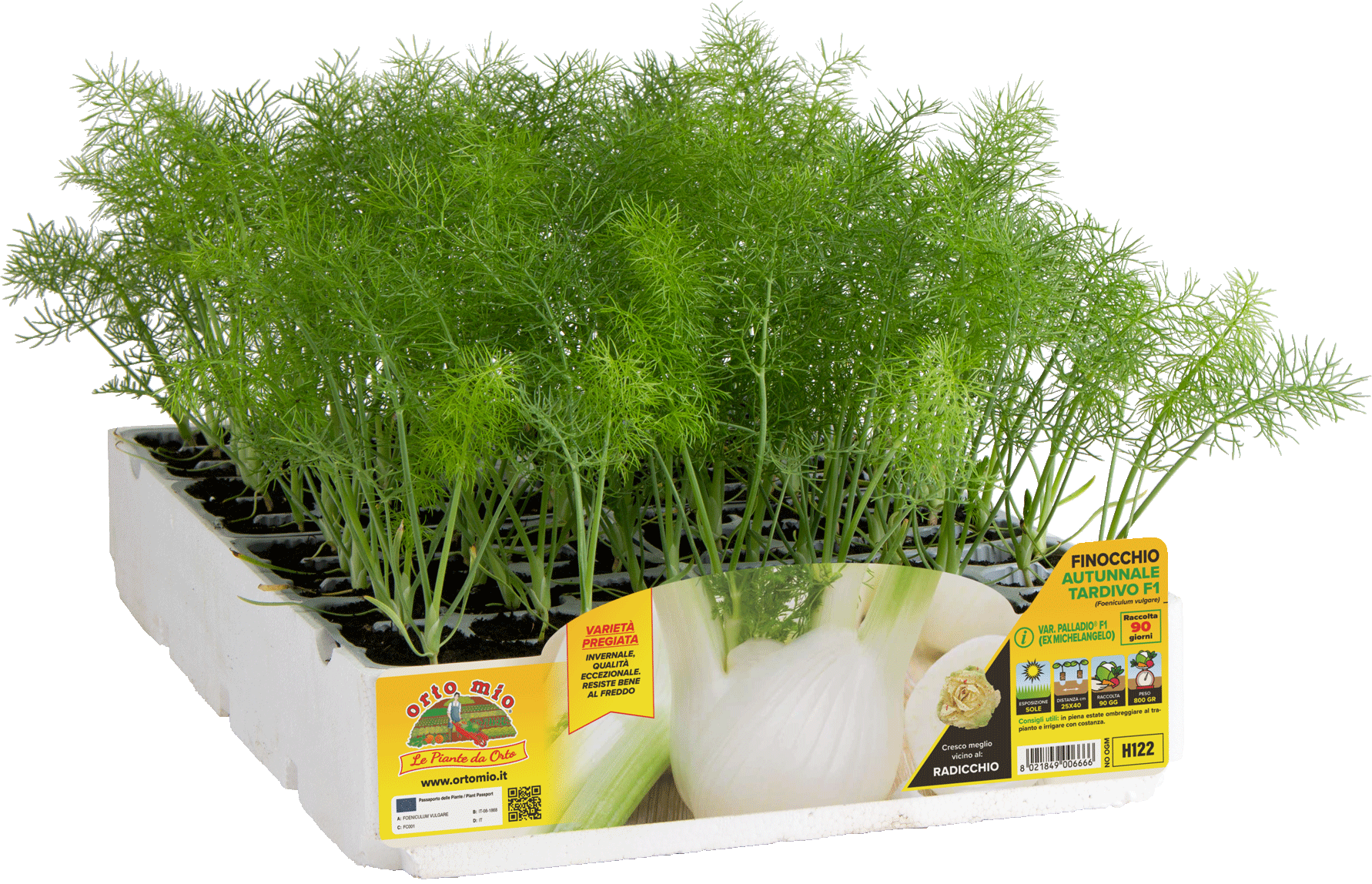 Nuovo finocchio ibrido di qualità straordinaria, per raccolta dall'autunno all'inverno, con buona tolleranza a pre fioritura e grande uniformità. Ha ottime caratteristiche gustative: croccante e dall'aroma delicato. Pianta vigorosa con grumolo tondo, di oltre 700 gr, molto bianco, non spugnoso e "senza fili". Buona tolleranza alle spaccature  basali dei grumoli. Concimare generosamente all’impianto e ripetere l’intervento dopo 4 e 6 settimane. Si raccoglie a 80-110 giorni dal trapianto (80-90 in estate e autunno e 90-110 in autunno e inverno). Tollera le basse temperature di fine autunno, ma è sempre consigliabile proteggerlo con tnt in caso di gelate.