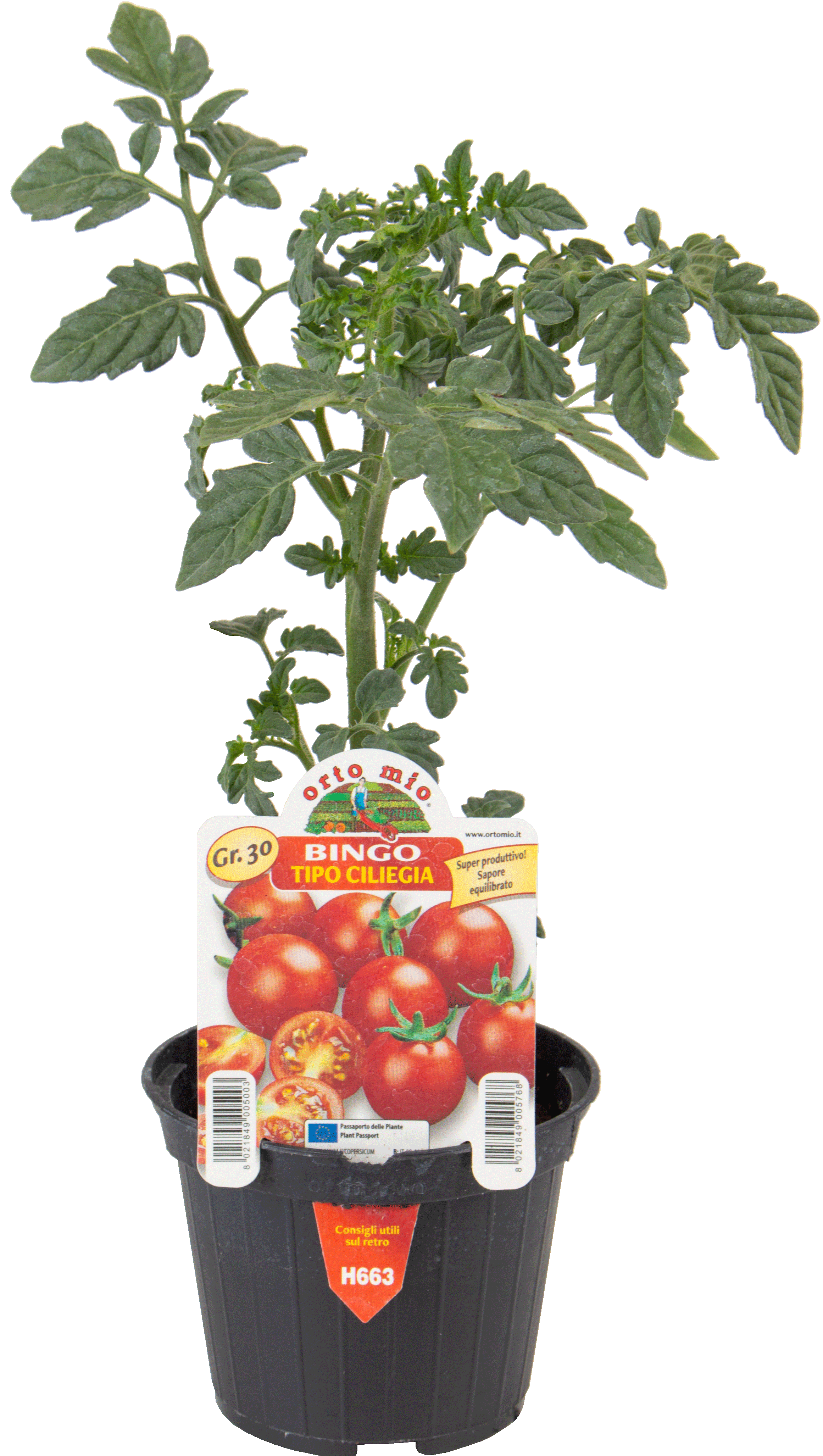 Bingo è un ciliegino di grosso calibro (30 gr), nella tipologia “pachino”, con grappoli lunghi ed eleganti. Si distingue per il buon sapore, ideale per chi ama i pomodorini con livello di dolcezza moderato. Le bacche sono sode e succose. La pianta è forte e molto produttiva, adatta per coltivazioni di serra e campo aperto. Molto tollerante a spaccature e marciume apicale dei frutti. Naturalmente resistente a nematodi e alle comuni patologie del suolo.