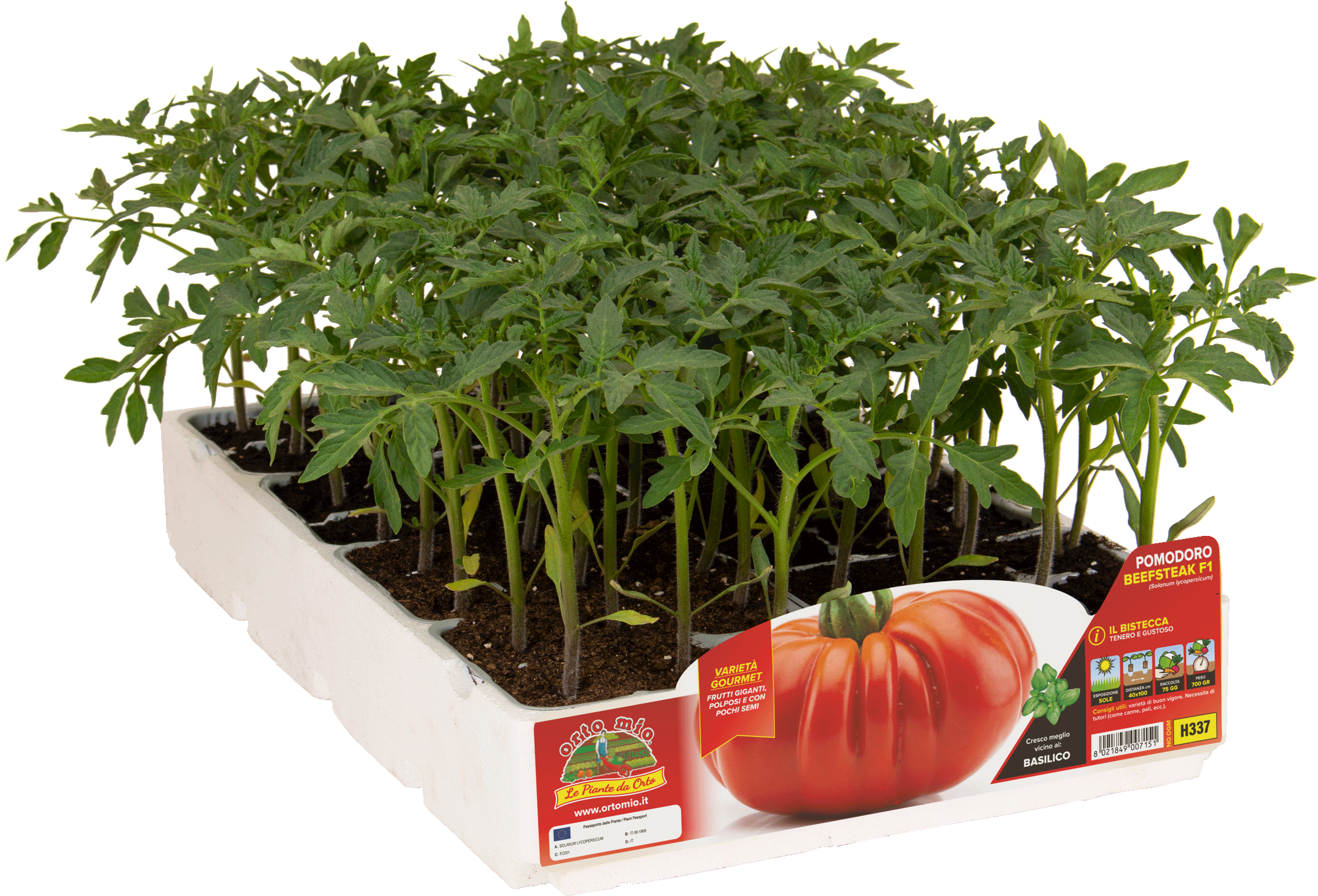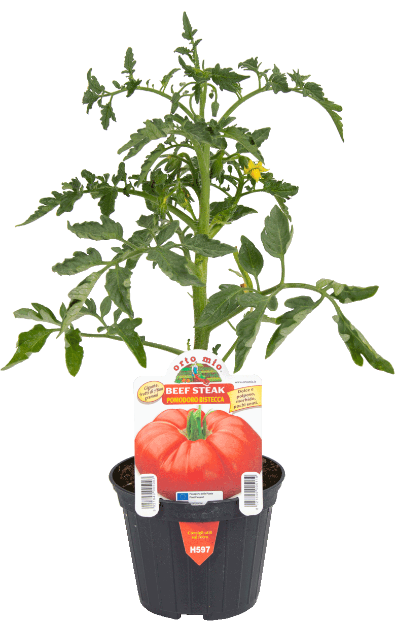 Pomodoro dalle bacche di grandi dimensioni, che possono superare gli 800 gr. di peso. Ha buccia sottile e polpa deliziosa: tenera e a bassa acidità, con pochi semi. Strepitoso in insalata e per salse. La pianta è molto vigorosa e offre la migliore resa produttiva nei trapianti di aprile e maggio. I fiori di Beefsteak hanno la tendenza ad abortire nei periodi più caldi, quindi si consiglia di coltivarlo insieme a varietà tolleranti alla cascola fiorale per un raccolto estivo senza interruzioni. Raccogliere rapidamente a maturazione, per preservare la qualità. Resiste a nematodi e alle comuni patologie del suolo.
