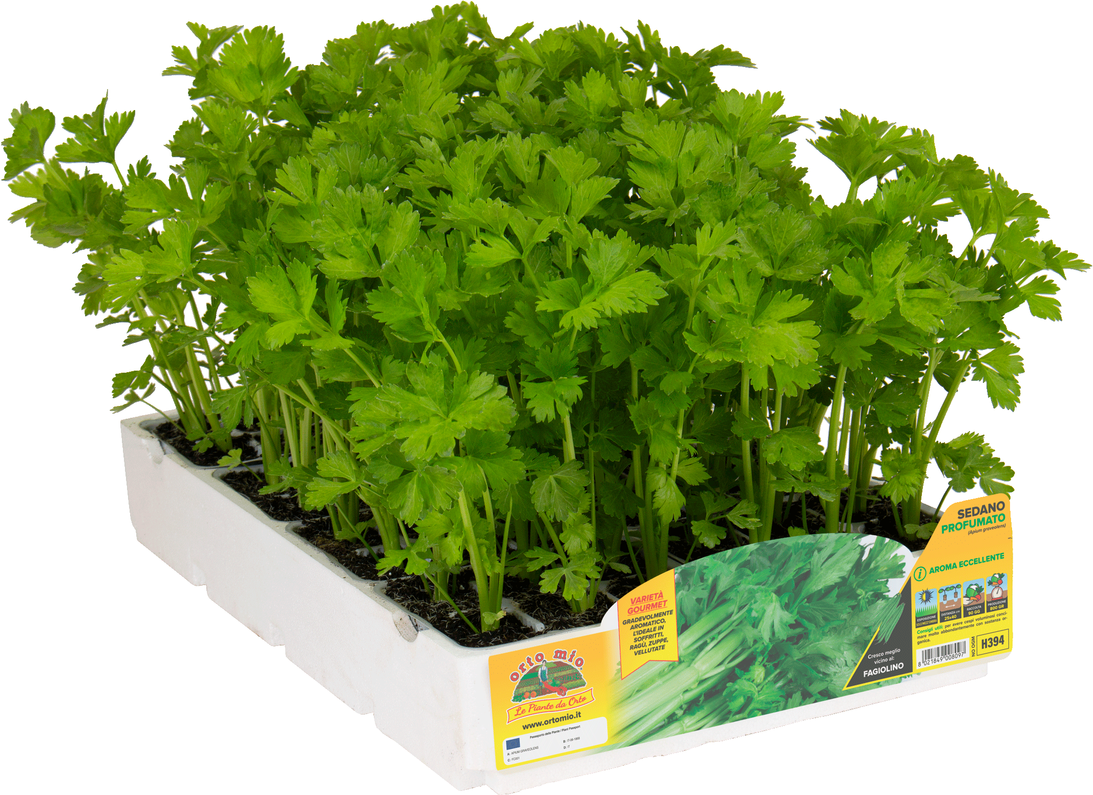 Sedano dall’aroma gradevole e intenso, ideale per utilizzo “da odore” in cucina. Ha pianta compatta, a portamento basso, con foglie molto profumate. La raccolta si effettua sfogliando gradualmente le coste, dall’esterno, iniziando dopo circa 70-80 giorni dal trapianto, quando le piante sono già ben sviluppate. Periodicamente è consigliato eliminare le foglie esterne quando sono ingiallite o poco sane, con macchie scure. In previsione delle gelate, proteggere attentamente il sedano con tessuto non tessuto e nylon, oppure è possibile raccogliere l’intera pianta, da conservare tagliata a pezzetti in congelatore. Per una crescita vigorosa, concimare generosamente al trapianto e in accrescimento con sostanza organica a pronto effetto.