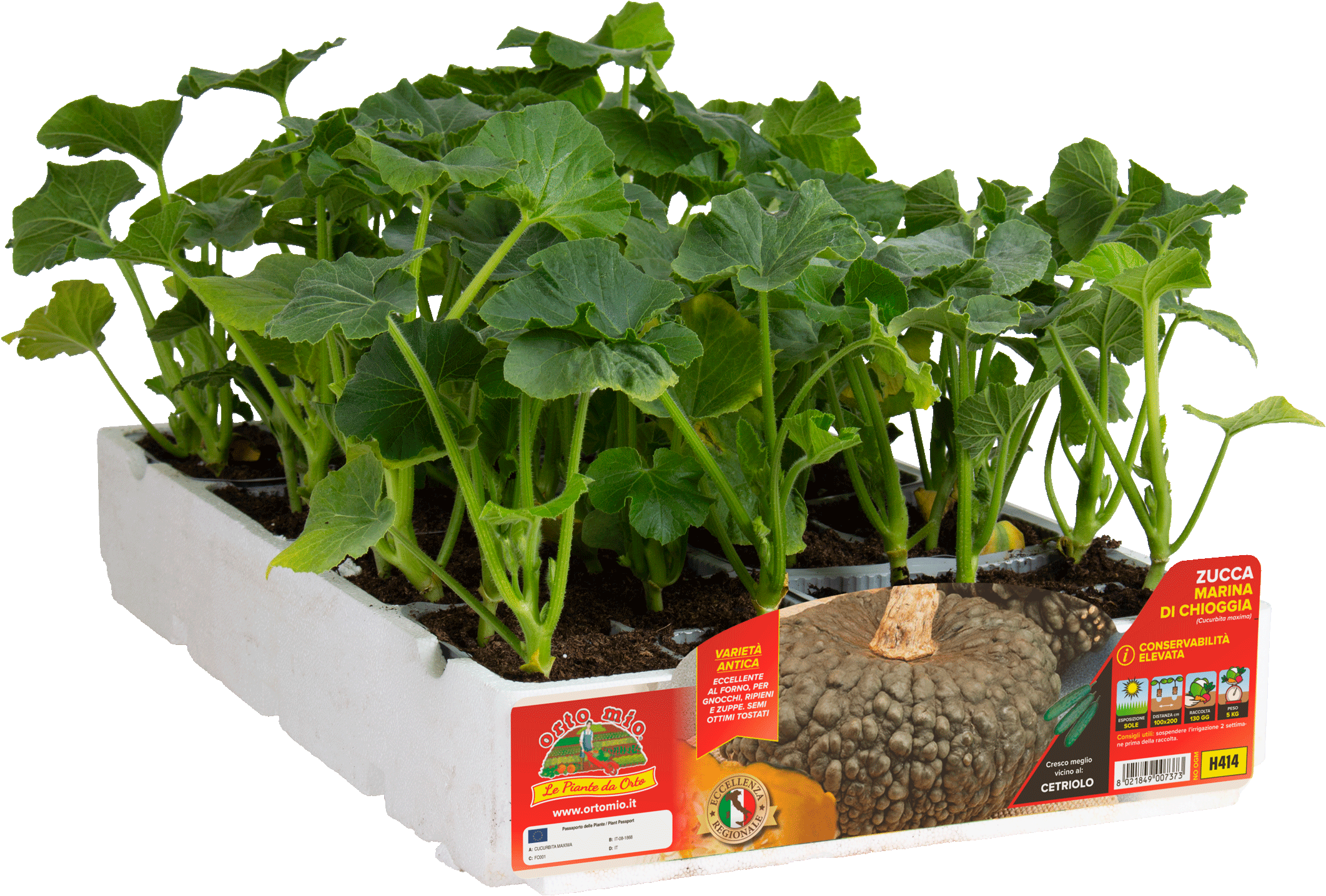 Nella gamma zucche Orto Mio si può scegliere tra le super produttive (Butternut, Delica, Ironcap), le più interessanti e versatili eccellenze italiane (Mantovana, Violina, Marina di Chioggia, Piacentina, ecc.) e le specialità internazionali più rinomate e gustose, come Zuccurì, straordinaria esclusiva giapponese, dal sapore unico.