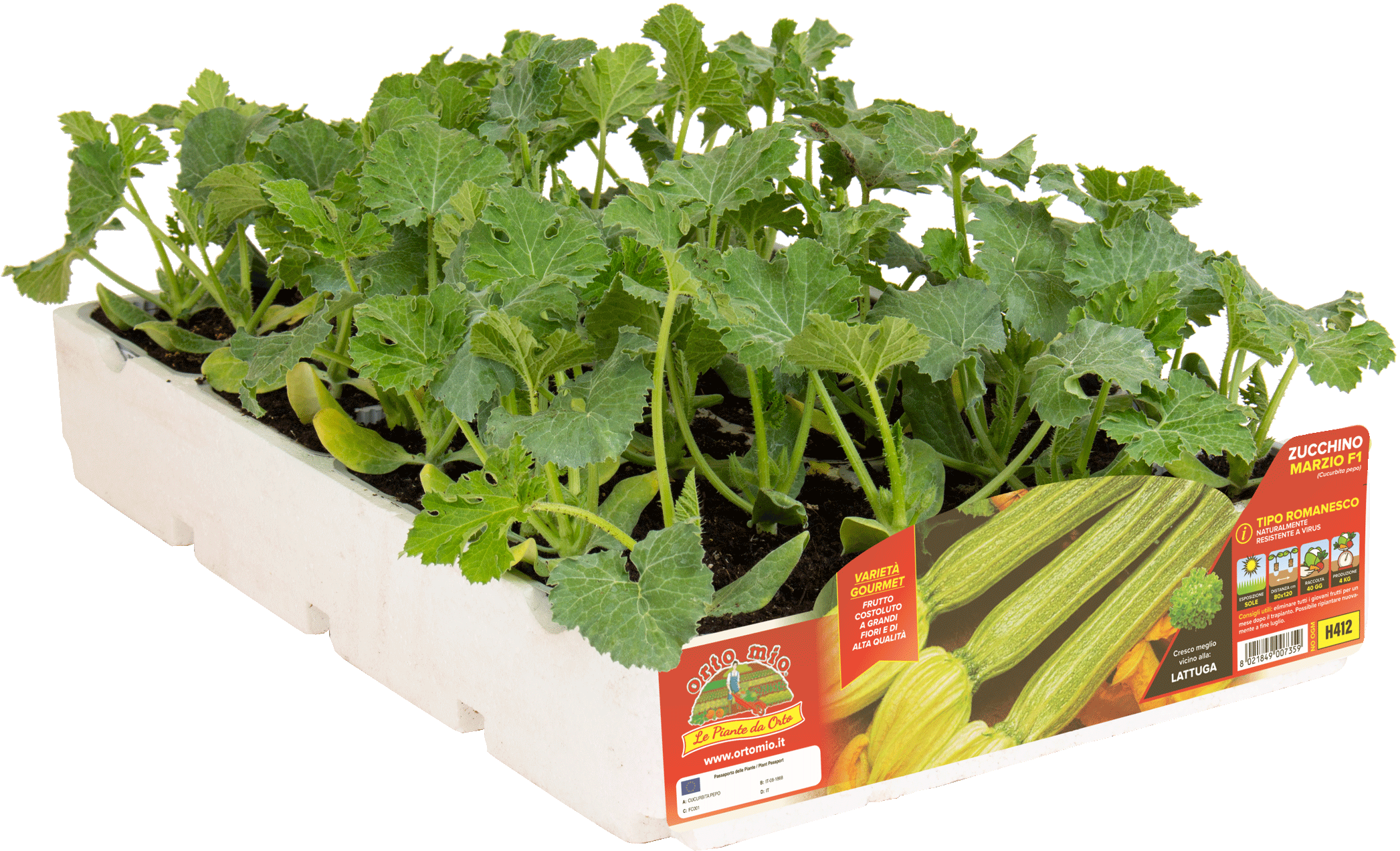 Nuova varietà esclusiva di Orto Mio, zucchino tra i più apprezzati per le qualità gustative. Ha frutti lunghi, dalle costolature evidenti, con polpa soda e fiore grandissimo e persistente. Molto grandi anche i fiori maschili. Di facile coltivazione, grazie alla pianta molto vigorosa, sana e produttiva. Nei trapianti estivi continua a dare una ottima produzione in campo aperto, anche grazie alla naturale resistenza a 3 virus dello zucchino (CMV, WMV, ZYMV) e mal bianco. Raccogliere i primi frutti alle dimensioni di 8-10 cm. La “vera” produzione inizia a 40 giorni circa dal trapianto. I trattamenti con lo zolfo (ogni 15 gg, iniziando 40 giorni dopo il trapianto), permettono di prevenire efficacemente il mal bianco. Nel periodo iniziale di vendita i vasetti di Florio potrebbero avere il vecchio cartellino di Marzio, che è disponibile solo in pack da 4 piante.