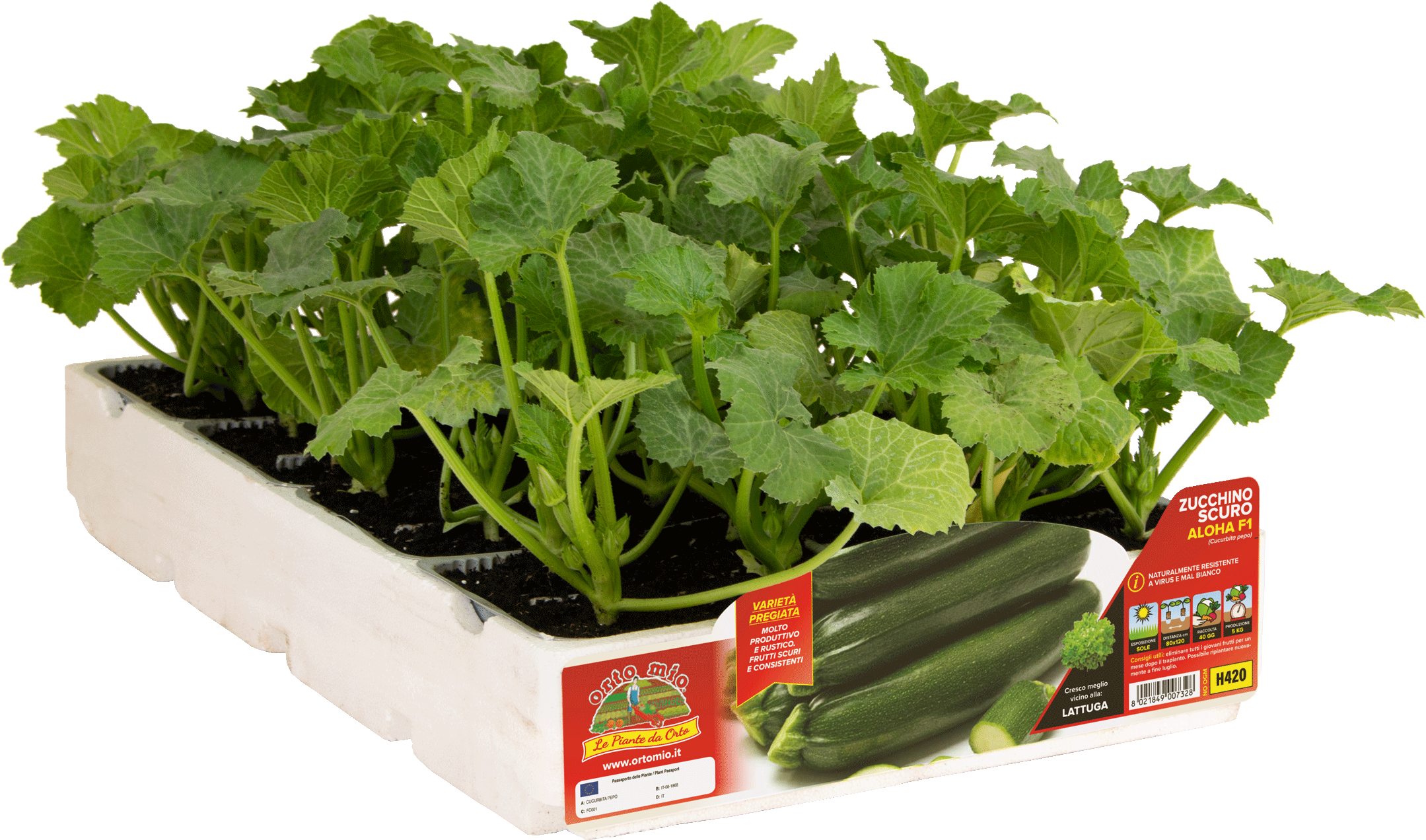 Aloha è la varietà professionale precoce dai frutti cilindrici, color verde scuro brillante, di 18-20 cm. Ottima conservabilità post raccolta. La pianta è forte ed eretta, di medio vigore, molto sana. La resistenza a 3 virus (ZYMV, WMV, PRSV) e oidio (mal bianco) ne agevolano la 'bio-coltivazione'. L'adattabilità al caldo estivo e alle temperature fresche primaverili riduce i rischi di aborti dei frutti. Coltivabile sia in serra che in campo aperto. Entra in produzione dopo circa 40 giorni dal trapianto; staccare precocemente i primi frutti prodotti, per rinforzare la pianta.  Coltivabile sia in serra che in campo aperto.