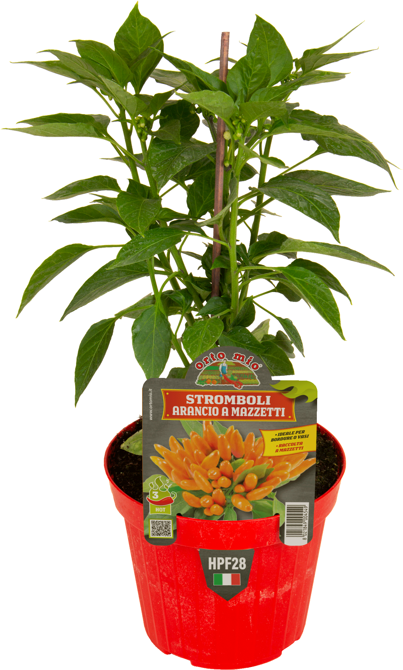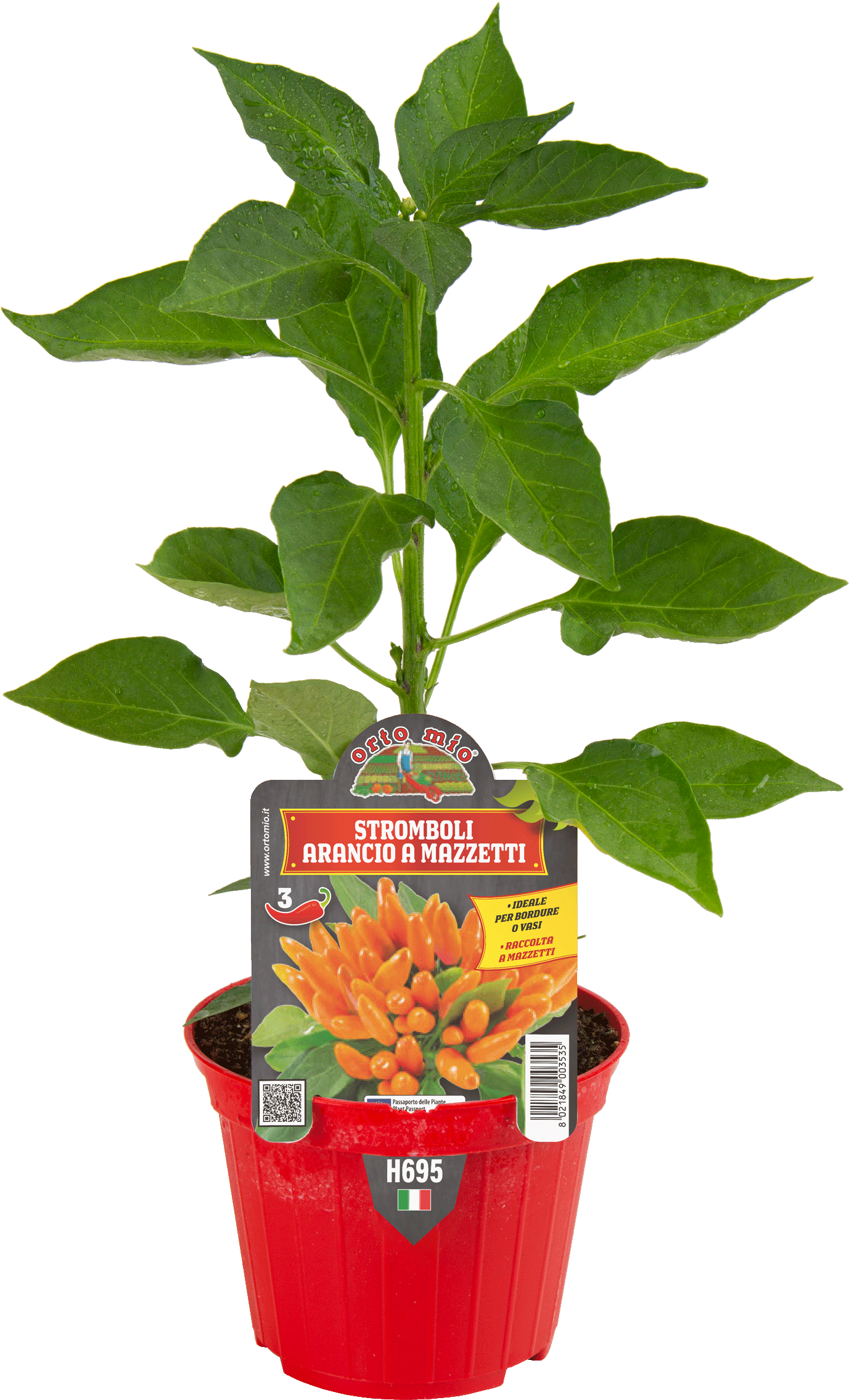 Caratteristiche: pianta compatta e molto decorativa, che non richiede tutori, ideale per la coltivazione in vaso. Produce bellissimi mazzetti di peperoncini di colore arancio, di aspetto molto gradevole.