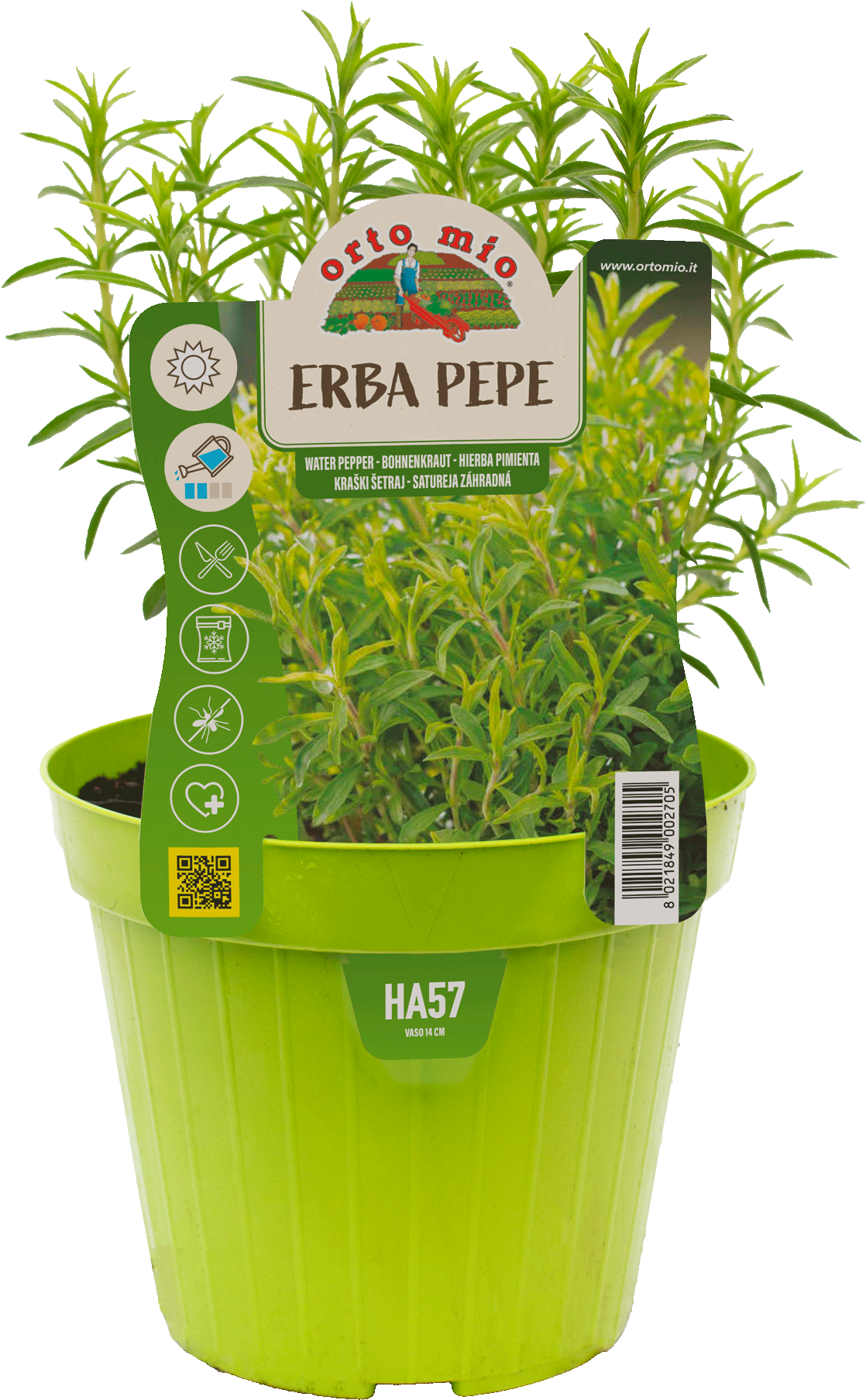 L’Erba pepe o Santoreggia domestica è così chiamata per il suo sapore e l’utilizzo che se ne faceva in passato in cucina, in sostituzione dell’omonima spezia. È ricca di oli essenziali. Utilizzata anche in fitoterapia, per problemi intestinali, renali e respiratori. Il forte odore dell’Erba pepe allontana gli afidi dagli ortaggi a lei vicini.